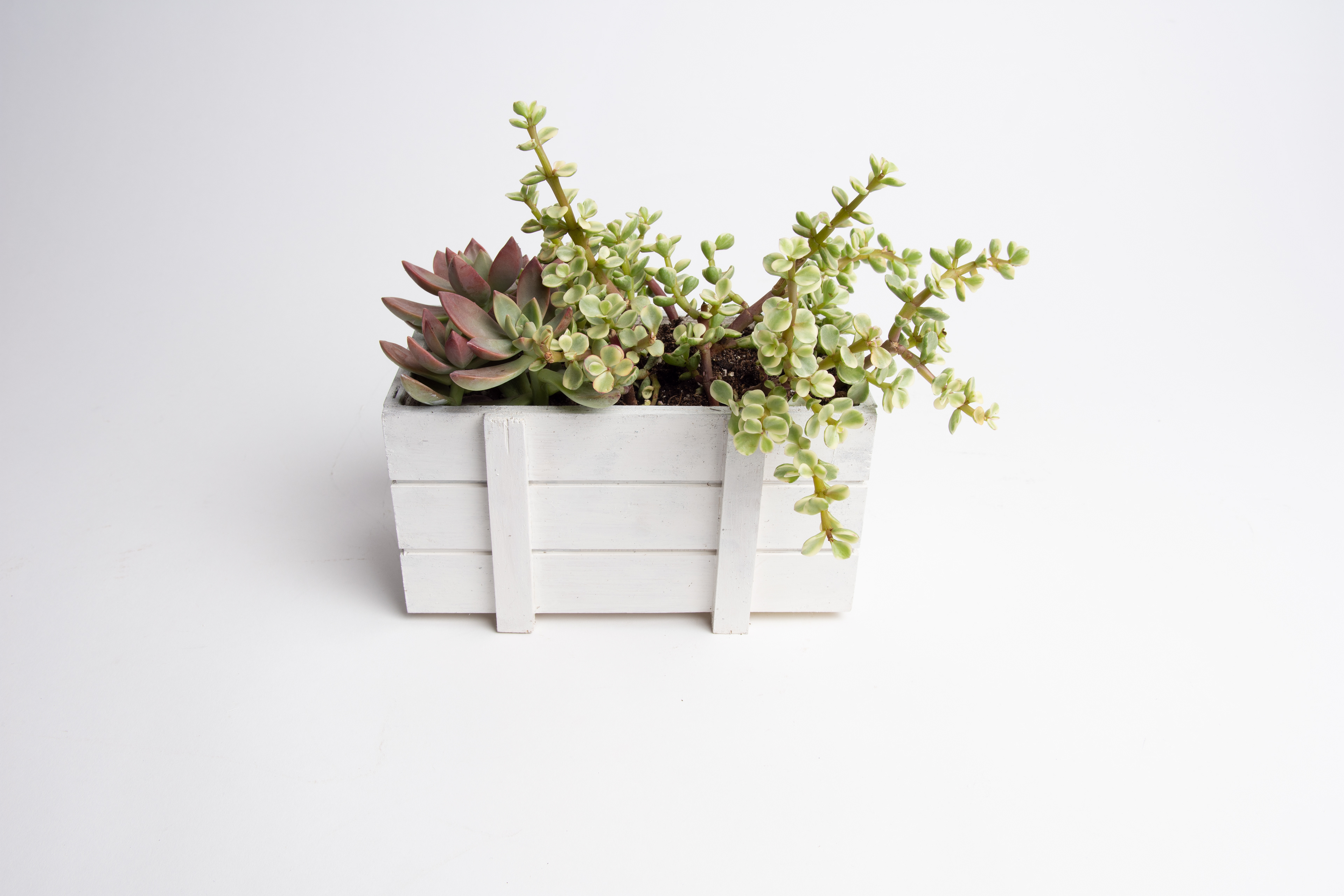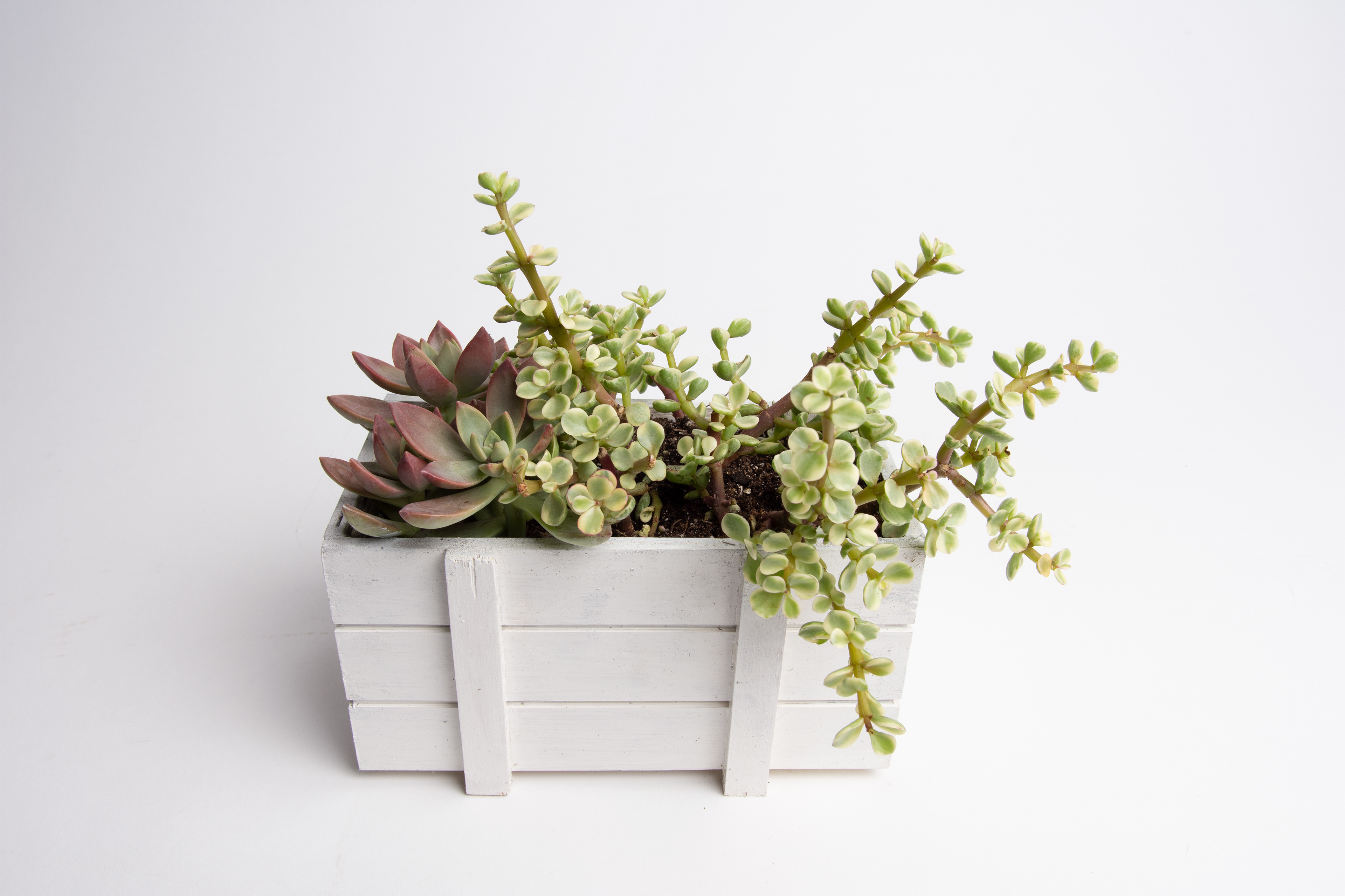 This planter box was built from wood and is a cute little holder for any household plants.