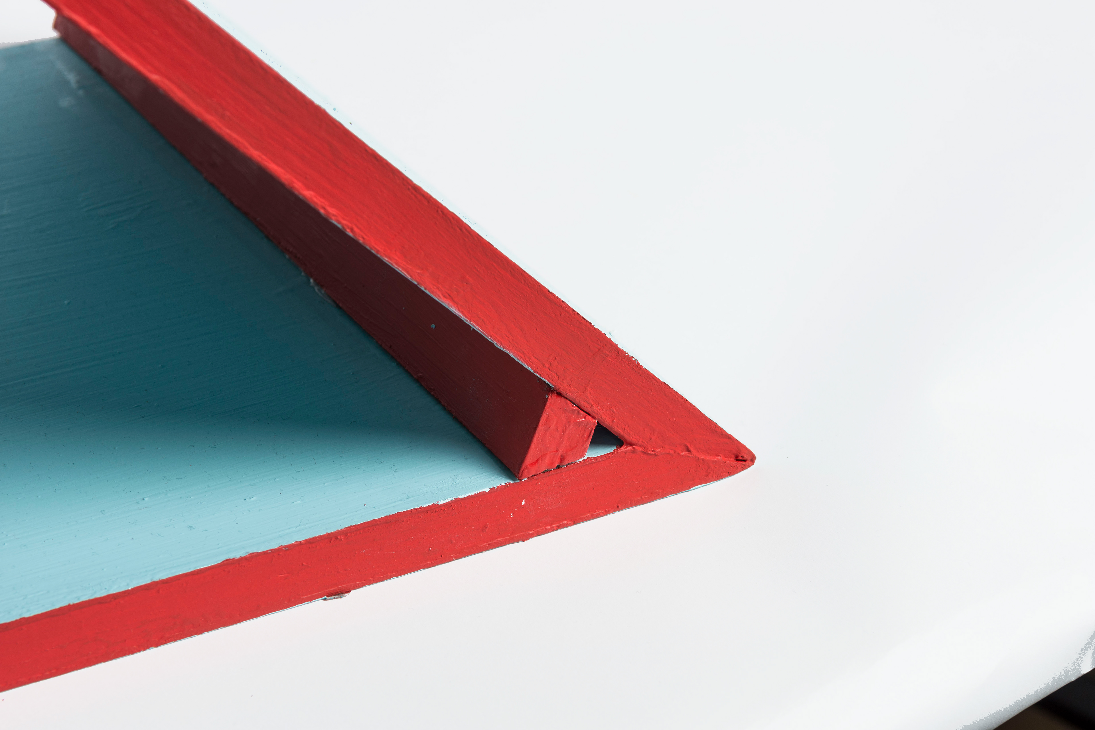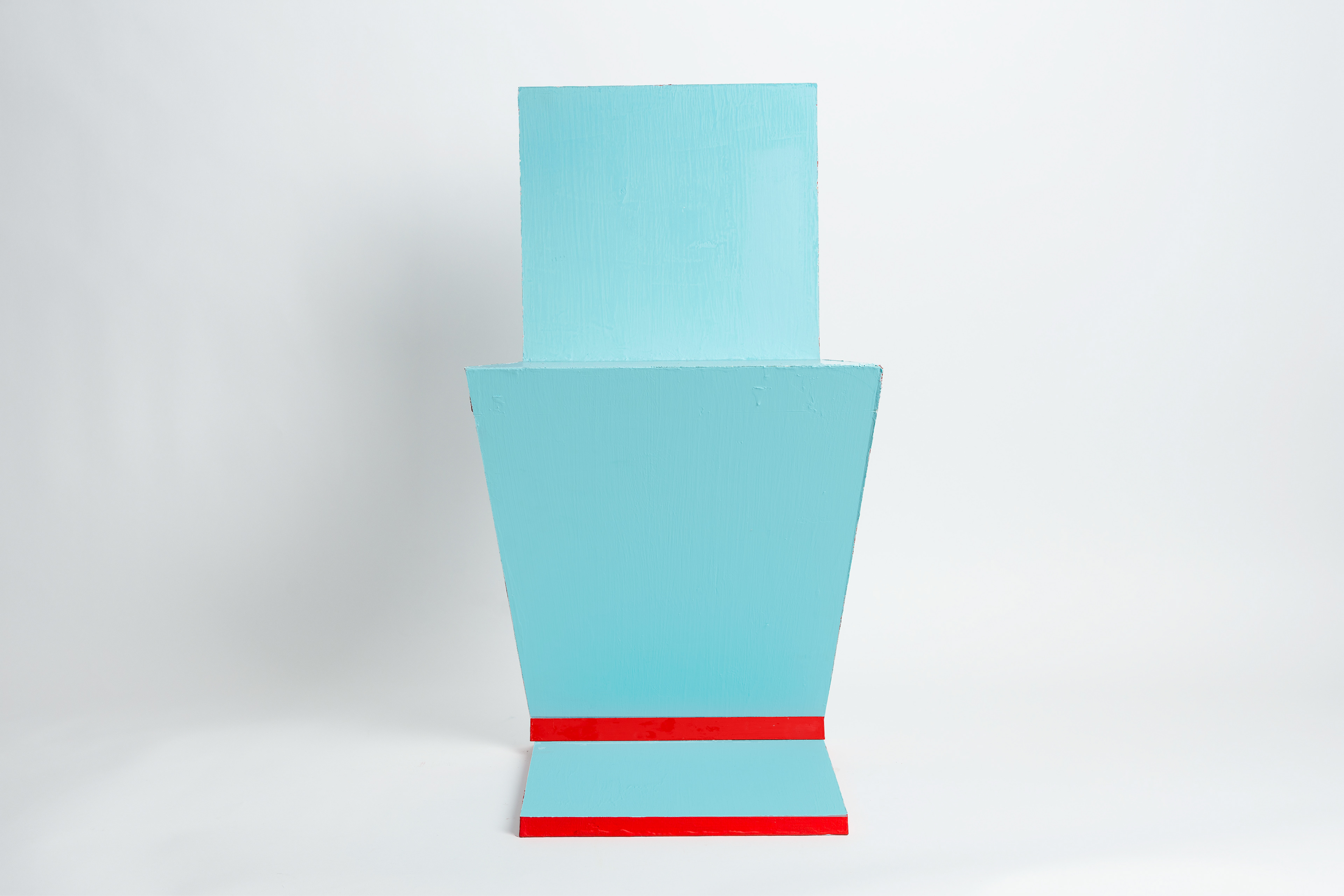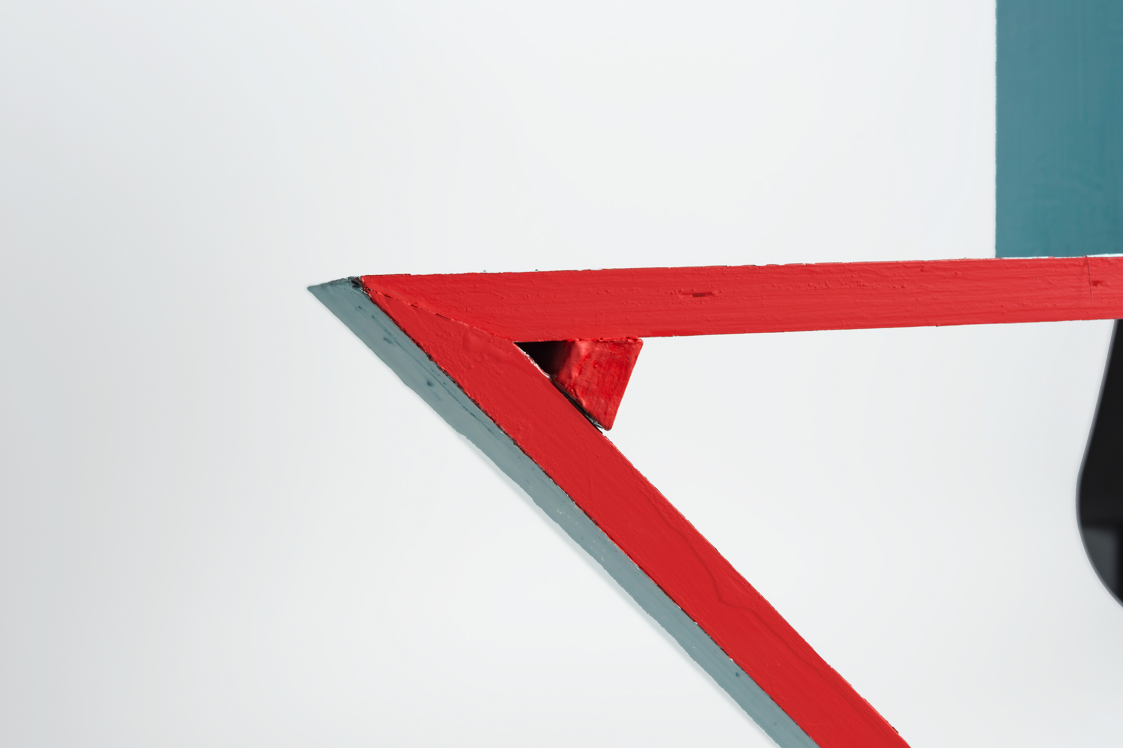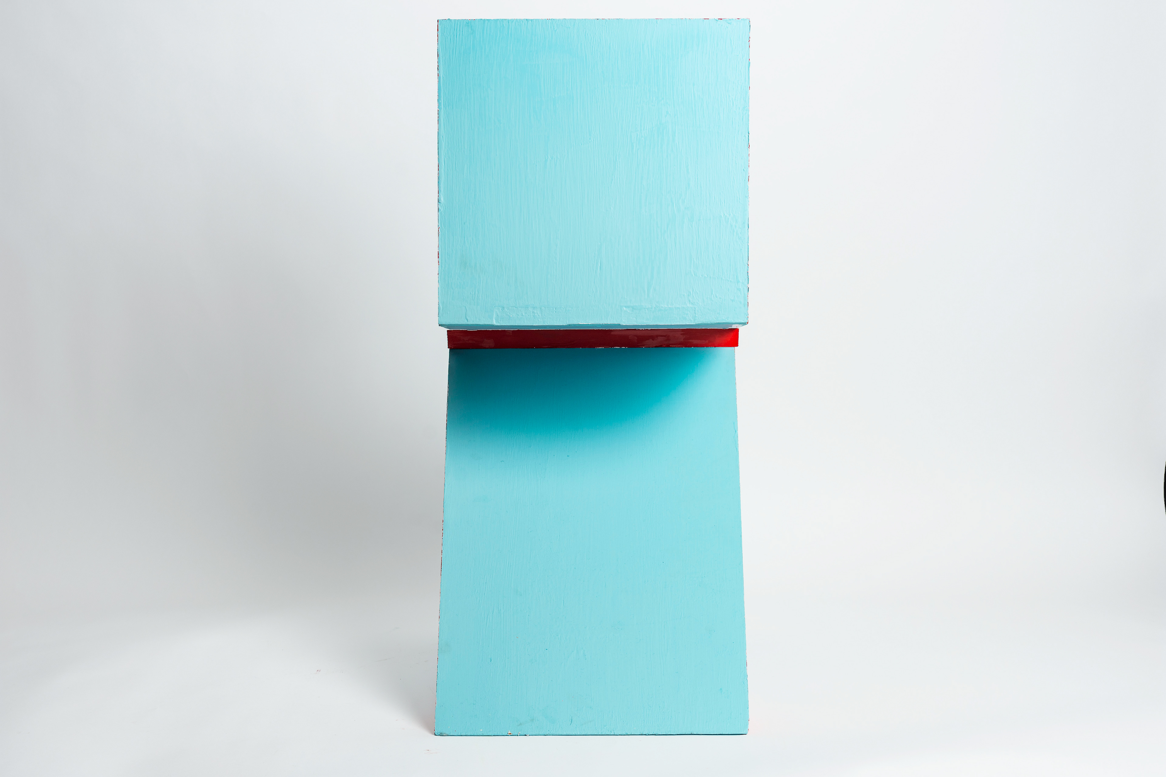 This chair was designed by Gerrit Rietveld. It is hand crafted out of wood and has zero adhesives. The chair can hold human weight from the strong joinery.